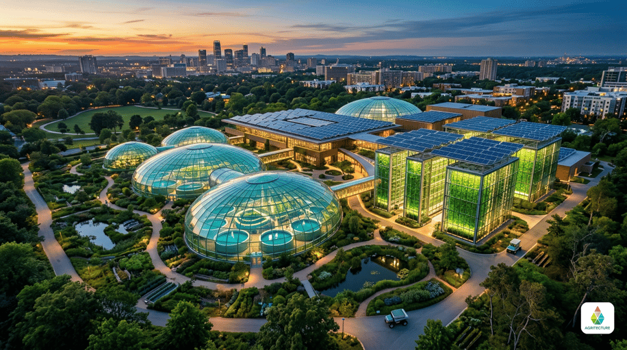 Image 5: The future of protein and produce: integrated CEA campuses combining aquaculture and crop production, powered by renewables.