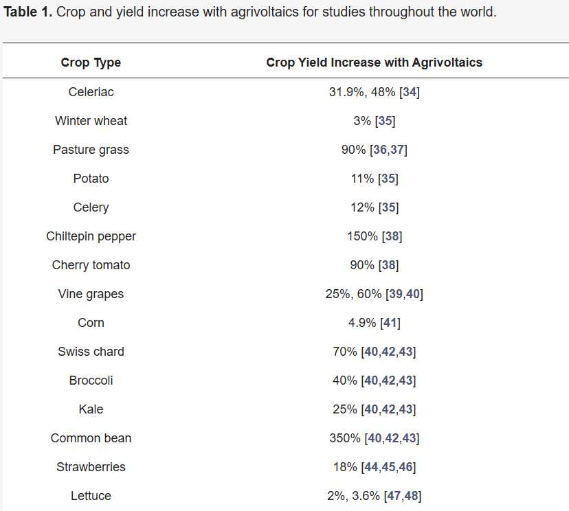 Meanwhile, staple crops like wheat, corn, and potatoes showed more modest gains (3–12%), emphasizing the importance of crop selection in agrivoltaic systems.
