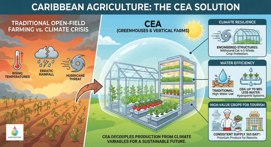 At Agritecture, we believe the Caribbean represents one of the most compelling use cases for Controlled Environment Agriculture (CEA) in the world. However, the path to success here isn't about copy-pasting solutions from the Netherlands or New York; it requires a strategy deeply rooted in local climate realities and economic data.